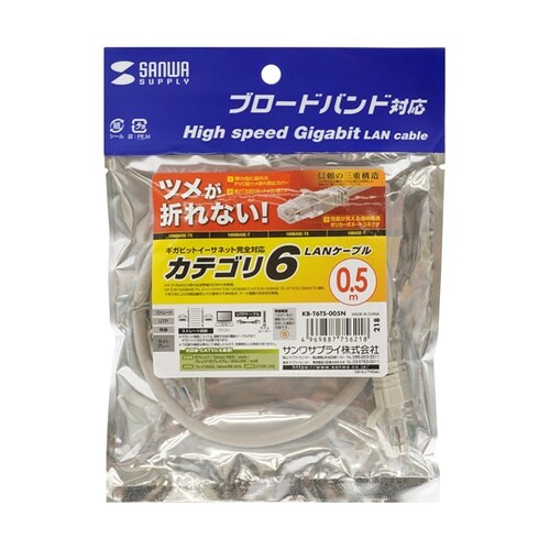 つめ折れ防止カテゴリ6LANケーブル KB−T6TS−005N KB−T6TS−005N 1セット