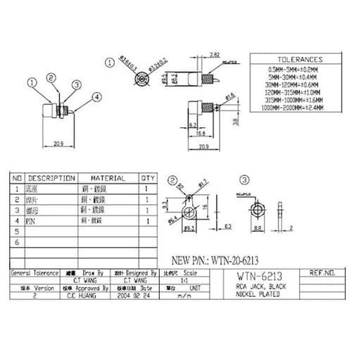 WTN20F6213W ピンジャック 白