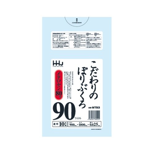ゴミ袋 こだわりのポリ袋 90L 100×90cm 厚さ0.025mm 10枚入 透明 MT93 MT93 1袋