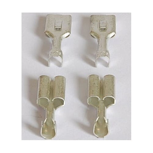 日本圧着端子製の250シリーズ差込型端子。自動車の配線などに良く使われており幅の違ういくつかの種類があります。この#250の他、#110、#187があります。 |