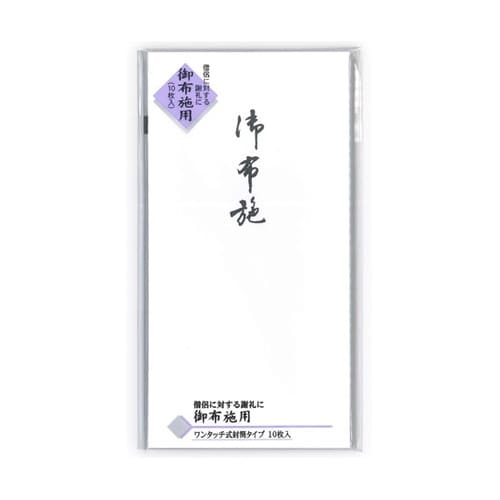 仏式の葬儀、法要、開眼などの僧侶への謝礼の金包みとして最適な万円袋(封筒タイプ)です。「御布施」の文字が墨色で印刷されています。裏面には封緘が簡単なテープのり付。 |