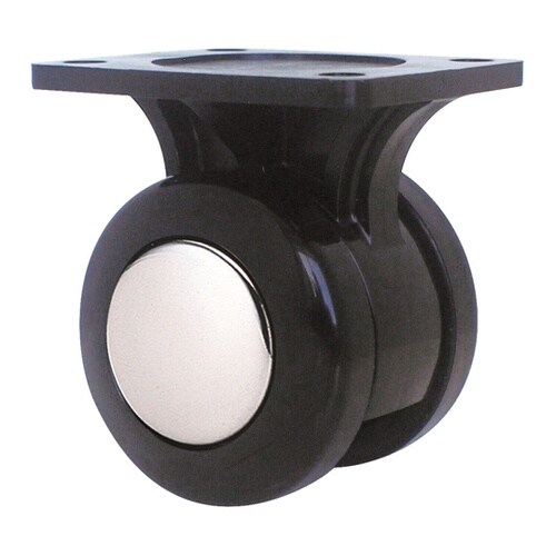 双輪であるため高い旋回能力を発揮します。OA機器、情報機器、ディスプレイ用什器、医療機器など。 |