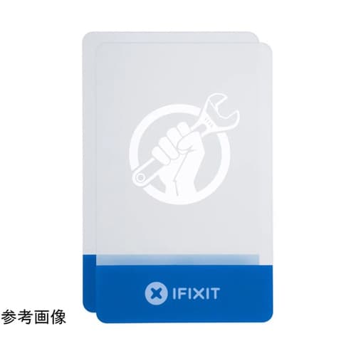 クレジットカードサイズのプラスチック製の薄板。粘着テープで固定されたスマートフォンの内蔵バッテリーの取り外しや、放熱用グリスを薄く延ばしたりする作業に便利です。 |