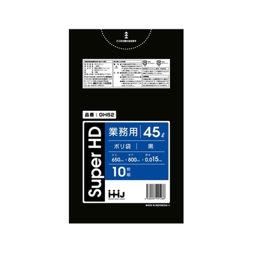 レジ袋のように、カサカサした感触が特徴の黒色のゴミ袋です。一枚あたり内容量は45Lです。引っ張りに強いです。10枚入りです。 |