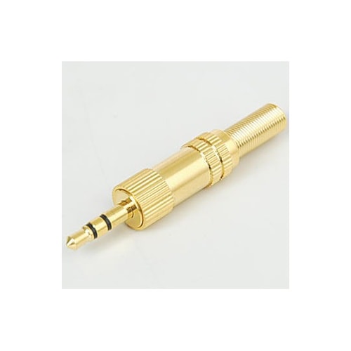 金メッキ仕上げの3.5mm径ステレオプラグです。本体部分は外れますので外してからはんだづけしてお使いください。 |