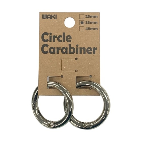 D型カラビナと違い、円形で引っかかる場所が無いため、取り回しがよい。真ん中が広いため、カバンの取っ手などに取り付けやすい。丸くてオシャレ、カラーバリエーションも豊富で手に取りたくなる。 |