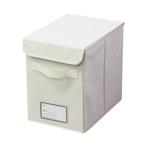 生活雑貨をスッキリ使いやすく整理整頓できる収納ボックスです。市販のカラーボックス半分にぴったり収まるハーフサイズです。中の物を記載できる見出しポケット付きです。 |