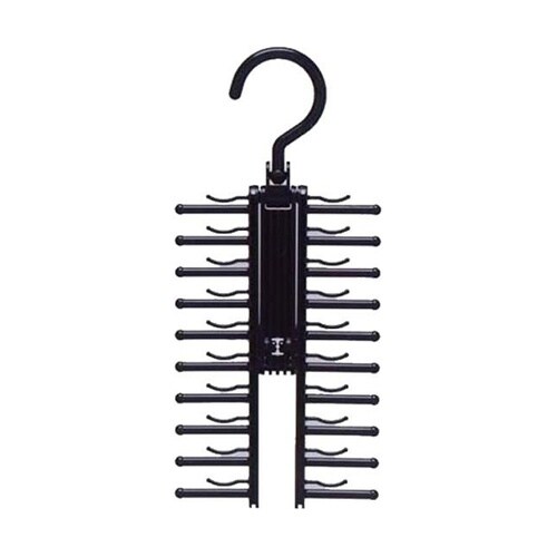 左右のネクタイ掛け部分を動かすと、クロスしてネクタイが取り出しやすくなります。回転フックをクルッと回せば180度逆転するので、季節ごとに分別するのにも便利です。 |