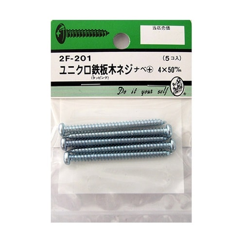 ビーバー ユニクロ鉄板木ネジ ナベ+ 4×50mm 5個入 2F201 2F201 1パック A06H-4074