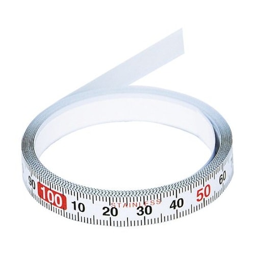 粘着テープ付フラットテープです。カットが自由にできます。数字を左から右に配置しています。サビに強いステンレステープです。目盛数字はミリ単位数字を採用しています。作業台、機械などへの取り付けに。 |