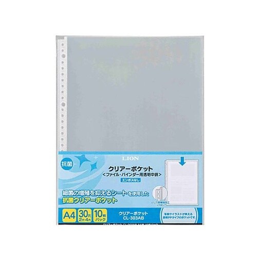 細菌の増殖を抑えるシートを使用した抗菌クリアーポケットとじ穴部は補強シール加工が施されています。 |