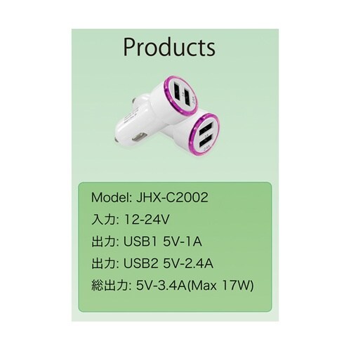 製品概要自動車のアクセサリソケットに差し込むことで、スマートフォンやタブレットを車で充電できる車載充電器です。スマートフォン、タブレットはもちろん、その他のUSB対応電子機器も使用可能です。 |