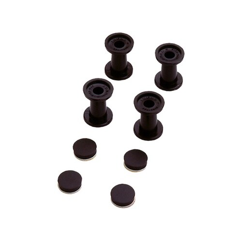 ケースの後面四隅に取り付けることで電源コード等の巻き取りができます。ゴム足としても使用できます。 |