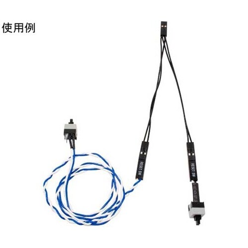 マザーボード上のパワー/リセットスイッチ、LEDなどの2ピンコネクタを分岐します。ケースの隙間や穴から追加のスイッチ/LEDケーブルを通して、手元でパソコンの電源操作/LED確認ができます。 |