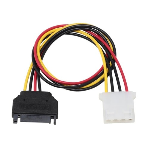 電源ユニットのシリアルATA電源コネクタ(15ピン)をペリフェラル電源コネクタ(大4ピン)に変換します。最新電源はペリフェラル電源コネクタが減っているので大変重宝します。