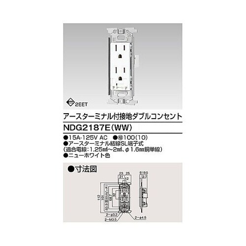 東芝 ET付接地ダブルコンセント NDG2187E(WW) NDG2187E(WW) 1個 A06H-6497