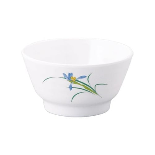 白磁に映る一挿しの薫り高い青蘭。ろくろ模様や細かい凹凸の表面加工により陶器の風合いを表現。長く愛されているロングセラー商品です。介護施設や病院、学校給食で定番のメラミン食器。 |