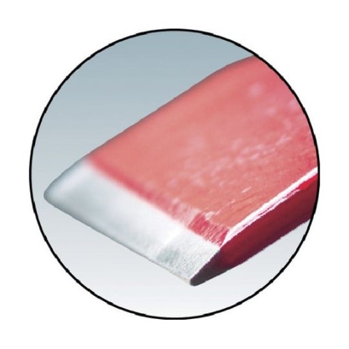 先端焼入で強いです。高周波焼入をしています。ブロック、レンガ割り作業に、Pタイル・道路標識のラインハガシ作業などに。溶接のスパッタ除去に。 |