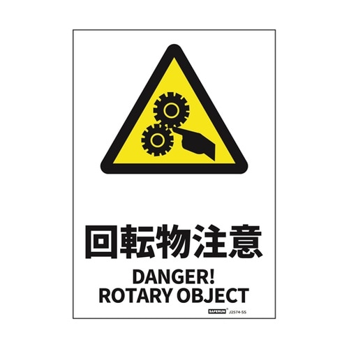 セーフラン安全用品 安全標識ステッカー 回転物注意 178x254mm J2574−SS J2574−SS 1枚 A06H-7056