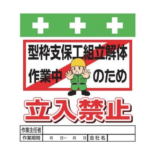 単管シート ワンタッチ取付標識 イラスト版 型枠支保工組立解体作業中のため立入禁止 T−016 T−016 1枚