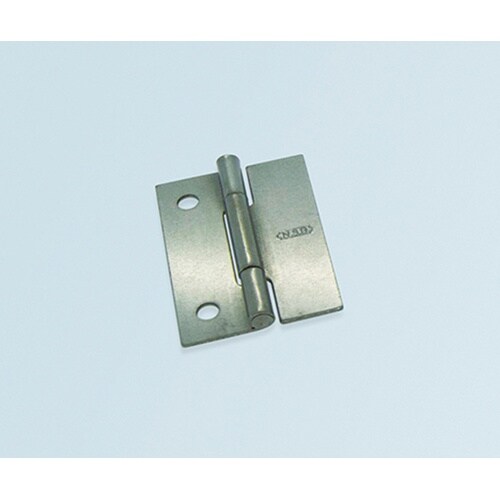 穴付側は本体にねじ止め、穴なし側はスポット溶接する量産向きのヒンジです。 |