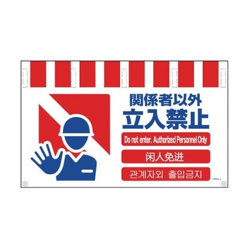 表示内容:関係者以外立入禁止 | 取付仕様:上部/マジックテープ 下部/ひも(ハトメ穴あり) | 縦(mm):550 | 横(mm):900 | 厚さ…