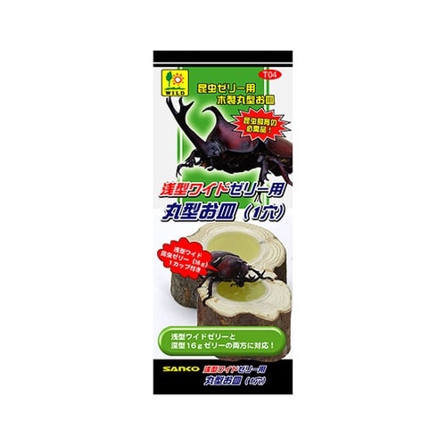 天然木使用で、中央に浅型ワイドゼリー用の直径で穴が設けてあり、浅型ワイド16g昆虫ゼリーと、従来の深型16gゼリーも両方使用出来る深さの穴になってる昆虫ゼリー用のお皿です。 |