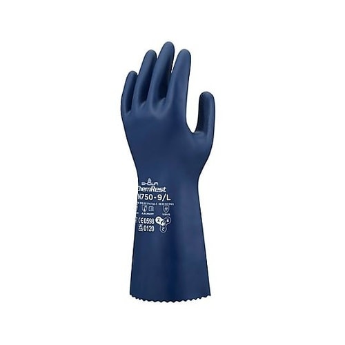 ニトリルゴム製化学防護手袋の厚手タイプです。耐薬品、耐油性、耐透過性、耐浸透性食品衛生法適合品油に対して耐久性があり、丈夫です。独自の内面加工により、汗をかいてもベタつきにくくなっています。 |