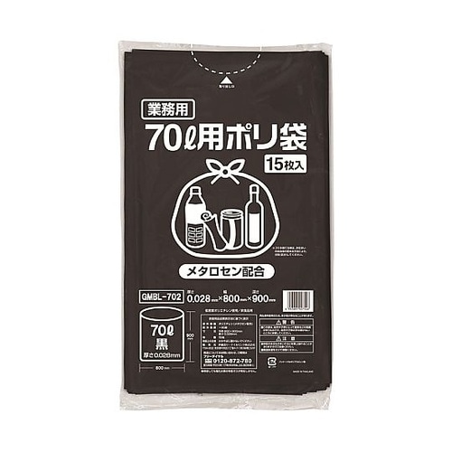 ポリゴミ袋(メタロセン配合)黒70L 15枚入り GMBL−702 GMBL−702 1袋