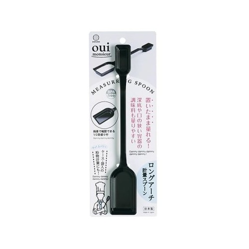 両側に大さじと小さじ付きの計量スプーンが付いたロングアーチ計量スプーンです。置いたまま量れるので便利です。深底や口の狭い容器の調味料も量りやすい形状です。 |