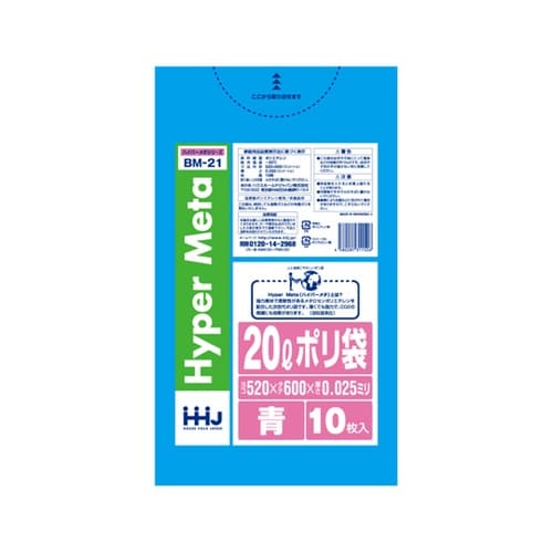青色のゴミ袋10枚入りです。1枚あたりの容量は約20Lです。表面がツルツルタイプの袋です。柔らかく伸びやすい素材が使用されており、破れにくいです。 |