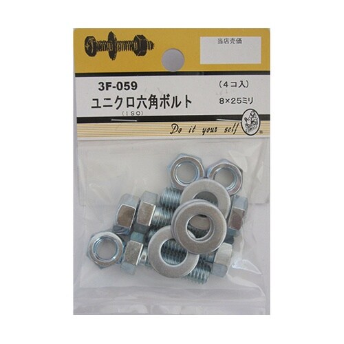 ビーバー ユニクロ六角ボルト 8×25mm 4個入 3F059 3F059 1パック A06J-4178