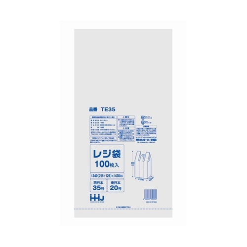 レジ袋 43×21.5cm マチ12.5cm 厚さ0.011mm 100枚入 西日本35号 東日本20号 取っ手付き 白 TE35 TE35 1袋