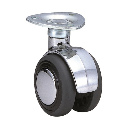 双輪であるため高い旋回能力を発揮します。OA機器、情報機器、ディスプレイ用什器、医療機器など。 |