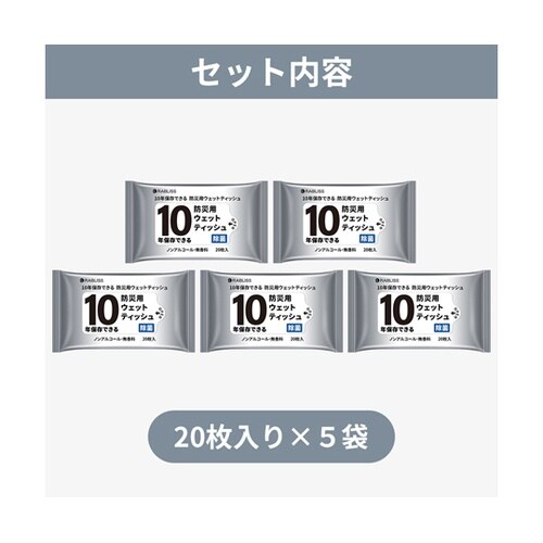 10年保存できる 防災用ウェットティッシュ 20枚入 5個セット KO402 KO402 1セット