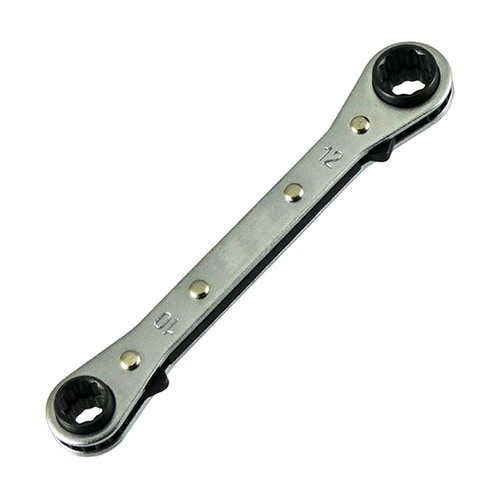 4サイズ板ラチェットレンチ!1本のレンチで4サイズのボルト×ナットを回せる4in1タイプ!ギヤ数18で20°でラチェットが駆動します。 |