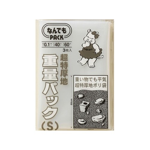 厚さが約0.1mmもある、かなり厚くて丈夫な収納袋 重量パックSサイズです。突起物のようなものでなければ、約2ー30kgの重量にも耐えることができます。便利な3枚入りです。 |