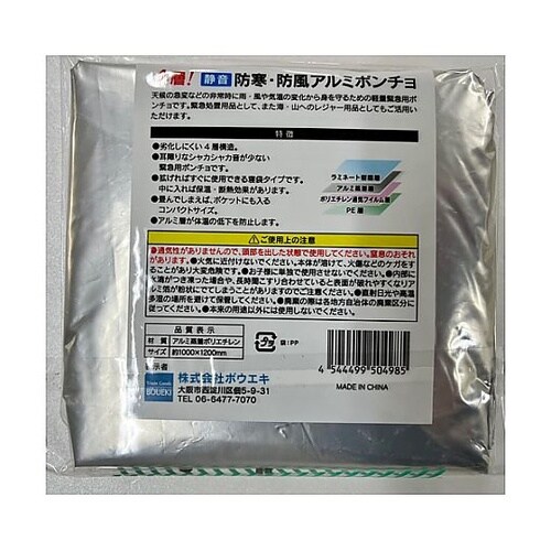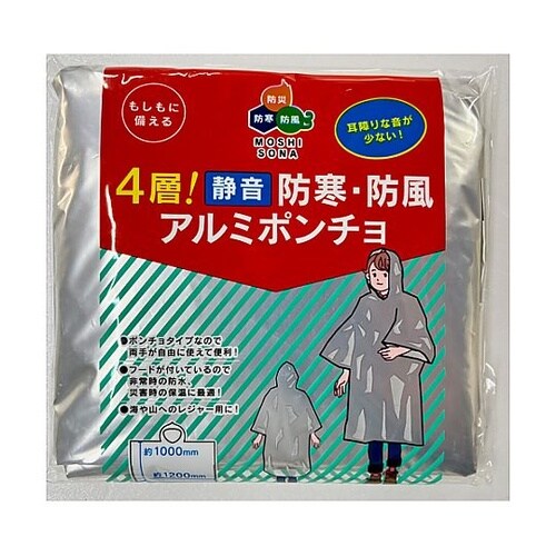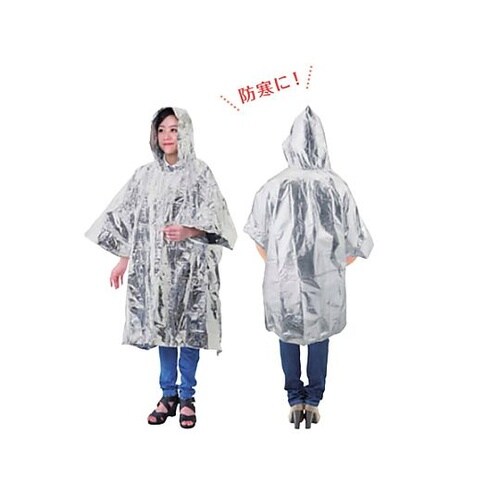 フリーサイズ避難時の防寒・防風対策に、またハイキングなどの突然の雨や野外でのトイレに緊急処置用品として、また海・山へのレジャー用品としてもご活用いただけます。 |