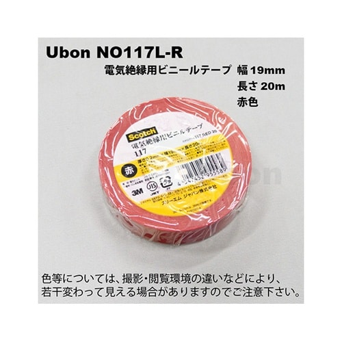ユーボン 電気絶縁用テープ 19mm×20m 赤 NO117L−R NO117L−R 1巻 A06J-7986