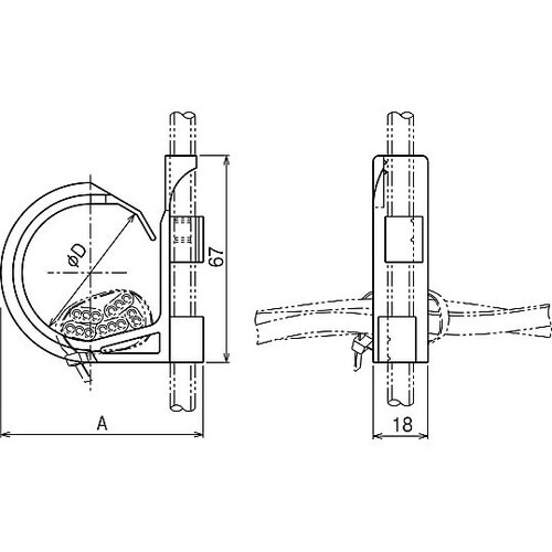 ストッパーが付いているため、吊りボルトへ堅固に取り付けできます。ループ状のフック部により、延線が容易に行えます。 |