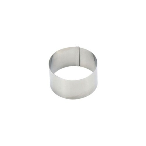 セルクルは枠だけの型です。天板で四角く焼いたスポンジを抜き取ったり、底に薄く焼いたタルトやスポンジ生地を敷いてババロアやムースを冷やして固めるのに使います。中の詰め物は流れ出ないものが適しています。 |