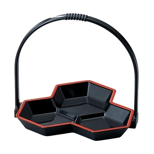 福井クラフト 亀甲手提げ珍味盛器(黒)天朱 93105890 93105890 1個 A06K-3234