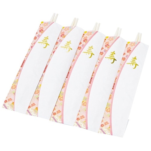 祝い箸(両細)が付いています。5膳入パック商品です。