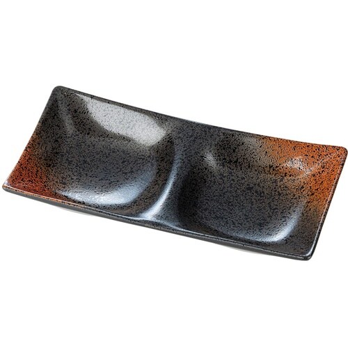 16.8cm 2点薬味皿 焼き締め裏黒塗