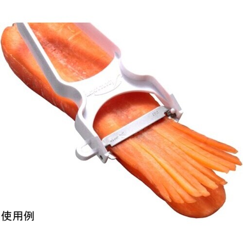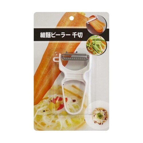 野菜の千切りにぴったりなピーラーです。刃はステンレス製なので、錆に強く丈夫です。芽取りも付いています。 |