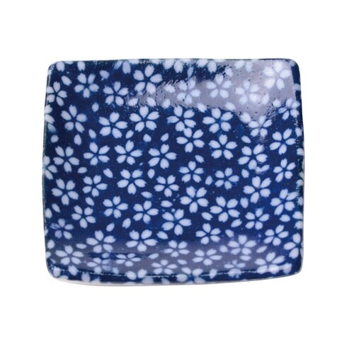 プチ風水・盛塩小皿(角型)藍 山桜 78458 78458 1枚