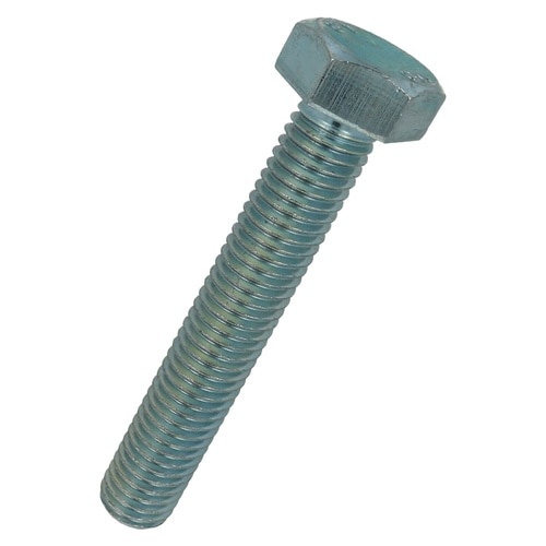 六角形状の頭部があり、胴の全体にねじが切ってあります。材質は鋼で耐食性向上のため、ユニクロめっき(薄青っぽい色合い)がしてあります。機械類の位置調整、締結用ねじです。生地に比べ耐食性があります。 |