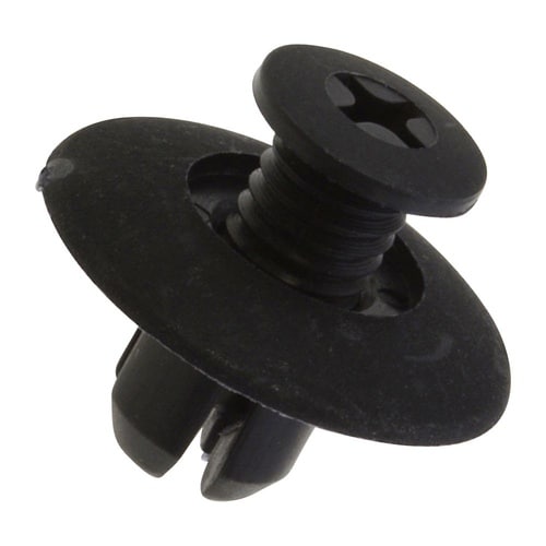 材質はナイロン6。脱着の繰り返しが可能で、脱去力が高く、2動作で取付可能です。パネルの取付、自動車部品などに使用。 |