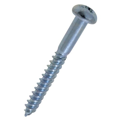 材質は鉄でユニクロめっき。十字穴付きの丸頭ねじで、木材専用です。打ち込む時に木材などにできる破損を防ぐために、ピッチが粗くなっています。木材に使用します。硬い木材には下穴が必要です。