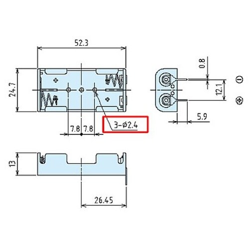 本数:2本用 | 配列:縦1×横2 | 端子形状:ピン | 色:黒 | ボディー材質:PP | 備考:基板取付ピン材質/鉄・ニッケルメッキ | 単位:…